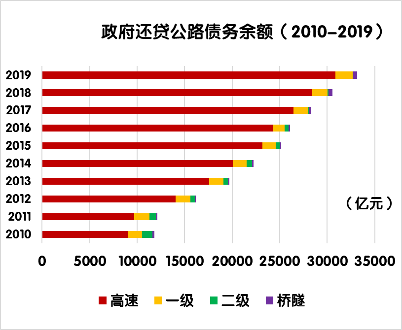 與上年末相比,政府還貸公路債務(wù)余額由30536.1 億元增加到33147.7億元,凈增 2611.6億元,增長(zhǎng)8.6%。其中,政府還貸高速公路債務(wù)余額由28420.3 億元增加到30889.7 億元,凈增2469.4 億元,增長(zhǎng)8.7%。